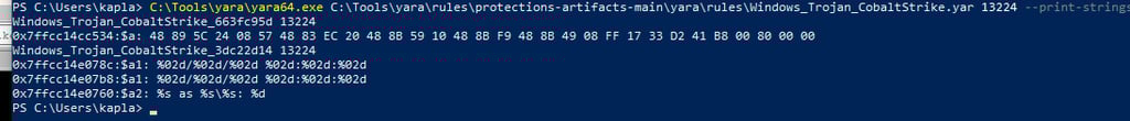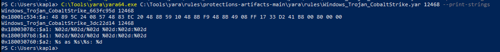 The bytes captured in these rules are called islands of invariance: byte sequences in your compiled code that persist across rebuilds. Static hashes, hook stubs, API resolution patterns, all of them produce consistent byte sequences that a defender can signature. Running this against our loader produced two rules that reliably detected the binary both on disk and in memory.