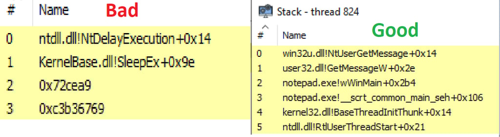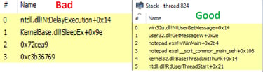 Even if you have never looked at a call stack before, and without reading the "BAD" and "GOOD" labels I drew on the images, you can probably tell that the one on the left looks a bit off. We will go deeper on why in a moment, but first let me give you a quick overview of what an EDR is actually looking at.