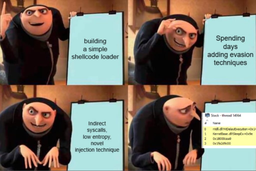 In this blog I want to take you on a full trip, starting from how C2 payloads actually work under the hood, all the way to building a reflective loader that bypasses one of the best EDRs available. THE SOURCE IS HERE. But more than just showing you the techniques, I want to explain why we're using them and what specific problem each one is solving. Randomly throwing evasion techniques at a target without understanding them is a great way to get caught. Evasion is a cat and mouse game and the only way to stay ahead is to actually understand what the EDR is looking at. I already covered static analysis evasion in depth here, so this time we're going deeper into runtime, what happens when your payload loads itself into memory and starts doing its thing.