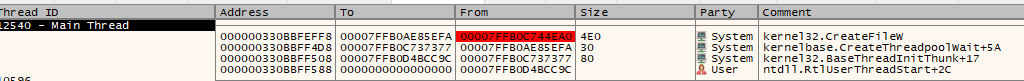 We get the addresses of BaseThreadInitThunk and RtlUserThreadStart, offset into them at the specific return address points.