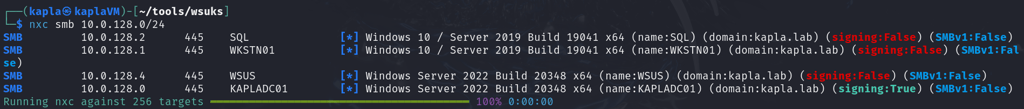 Before any attack is a good idea to scan for targets, and most importantly identify the WSUS server, for this I used NetExec