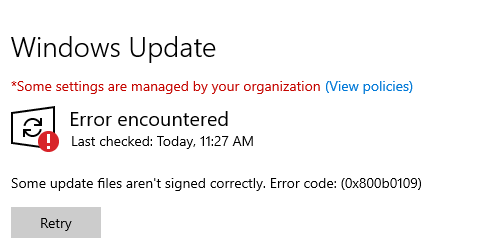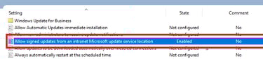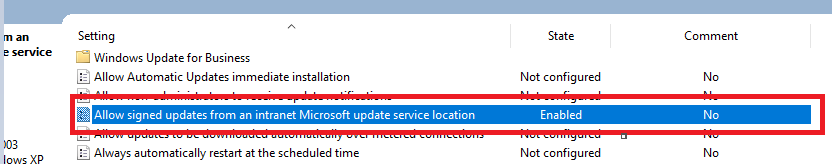 In some cases businesses might choose to create their own custom updates, this means that they will not be Microsoft signed, rather they will use a certificate they own signed by a private CA, this can be done with ADCS for example. To make this possible, a setting in the WSUS client GPO needs to be enabled "allow signed updates from an intranet Microsoft update service location"
