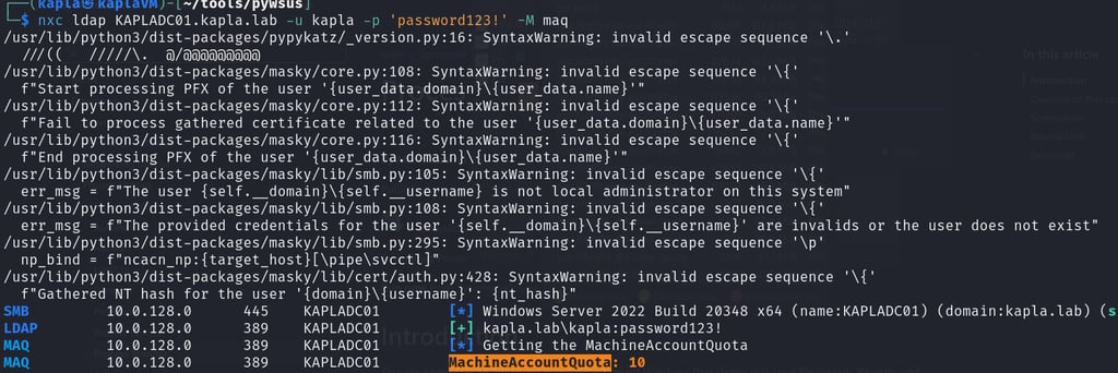 Before launching any attack, I enumerated the MachineAccountQuota to check if I could add a machine account to the domain