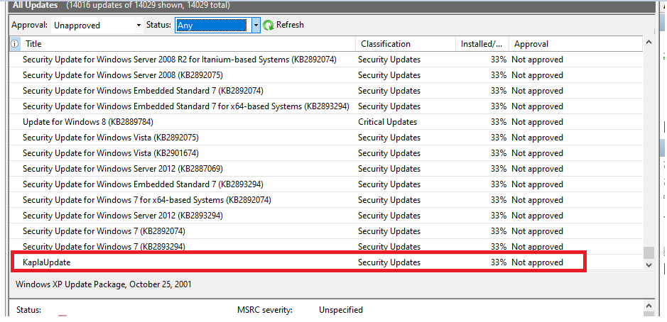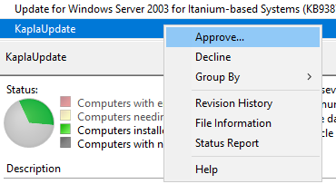 Now you can right-click on the update and approve it for all computers and groups